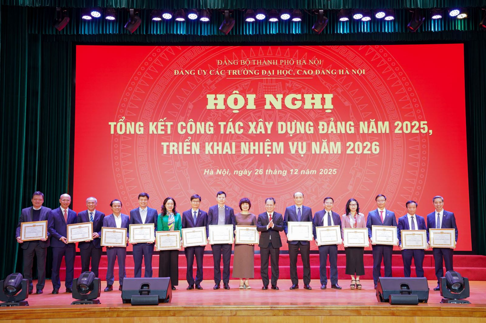 Những nỗ lực toàn diện đó đã được các cấp ghi nhận, đánh giá cao. Năm 2025, Đảng bộ Trường Đại học GTVT vinh dự là 1 trong 12 tập thể tiêu biểu nhất được Ban Thường vụ Thành ủy Hà Nội tặng Bằng khen về thành tích xuất sắc trong công tác xây dựng Đảng và thực hiện nhiệm vụ chính trị; đồng thời là 1 trong 14 tổ chức cơ sở đảng đạt tiêu chuẩn “Hoàn thành xuất sắc nhiệm vụ” tiêu biểu năm 2025 của Đảng ủy các trường Đại học, Cao đẳng Hà Nội. Đây không chỉ là phần thưởng xứng đáng, mà còn là sự khẳng định uy tín, vị thế và sức lan tỏa của một đảng bộ vững mạnh, đoàn kết, đổi mới và trách nhiệm.