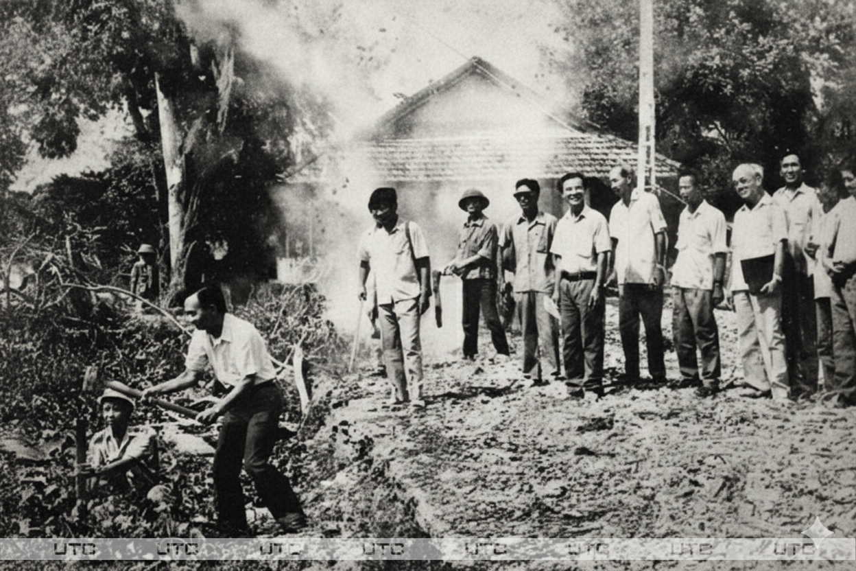 Thầy Đỗ Doãn Hải – Hiệu trưởng Nhà trường đóng cọc mốc xây dựng giảng đường 7 tầng năm 1990