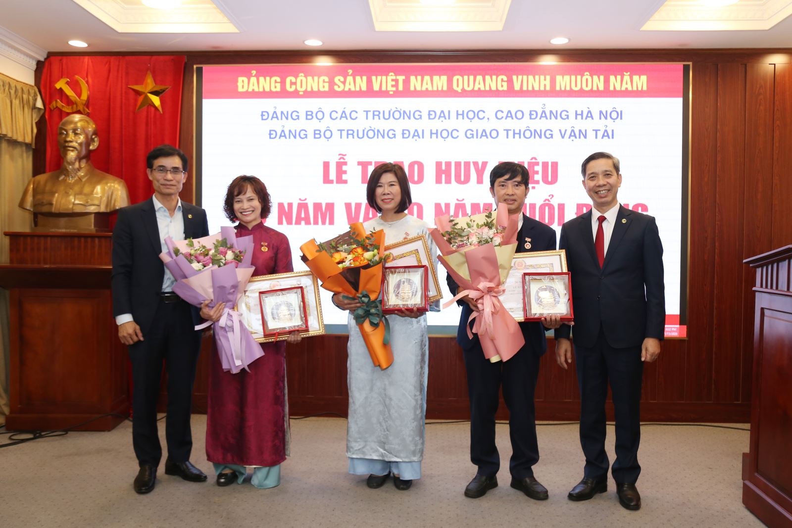Trong đợt này Đảng bộ Trường có 4 đồng chí vinh dự nhận huy hiệu Đảng là các đồng chí Nguyễn Duy Việt - Chi bộ Điều khiển-Tự động hóa nhận huy hiệu 40 năm tuổi Đảng; đồng chí Vũ Xuân Vịnh – Chi bộ Giáo dục quốc phòng, đồng chí Nguyễn Thị Hòa - Chi bộ Khảo thí và Đảm bảo Chất lượng đào tạo, đồng chí Chu Kiều Linh - Chi bộ Cơ sở quản lý và kinh tế vận tải nhận huy hiệu 30 năm tuổi Đảng.