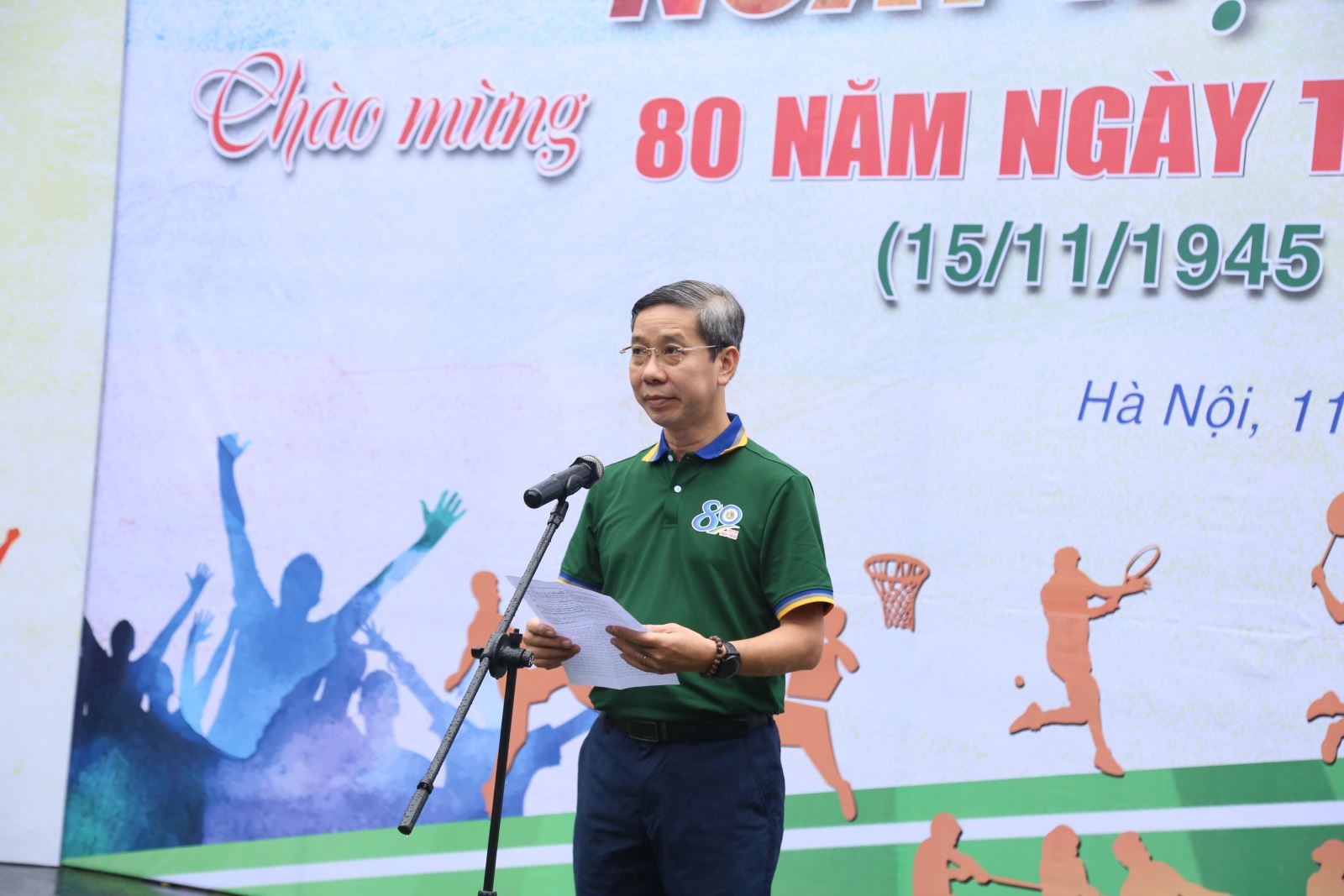 PGS.TS Nguyễn Thanh Chương nhấn mạnh ý nghĩa của việc phát động giải chạy "UTC Marathon - 80 năm Tự hào vươn xa" biểu tượng cho hành trình phát triển bền bỉ và khát vọng vươn tầm của Trường Đại học Giao thông vận tải. Mỗi bước chạy hôm nay không chỉ là bước chạy trên đường đua mà còn là bước tiến về tinh thần, nỗ lực, ý chí và trách nhiệm, luôn sẵn sàng chinh phục những đỉnh cao mới. PGS.TS Nguyễn Thanh Chương cũng gửi lời cảm ơn tới các tổ chức đoàn thể, đơn vị chức năng trong trường và các doanh nghiệp đã đồng hành và tài trợ cho Ngày hội thể thao và Giải chạy Marathon an toàn, chuyên nghiệp.