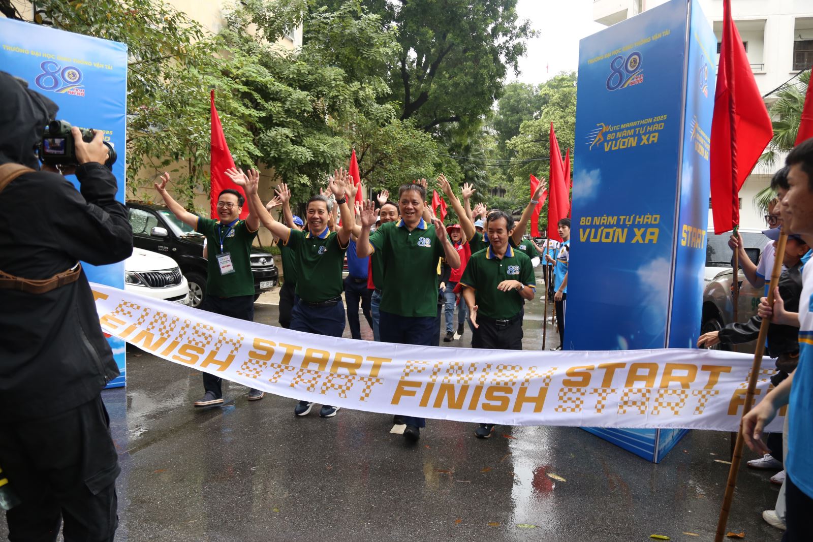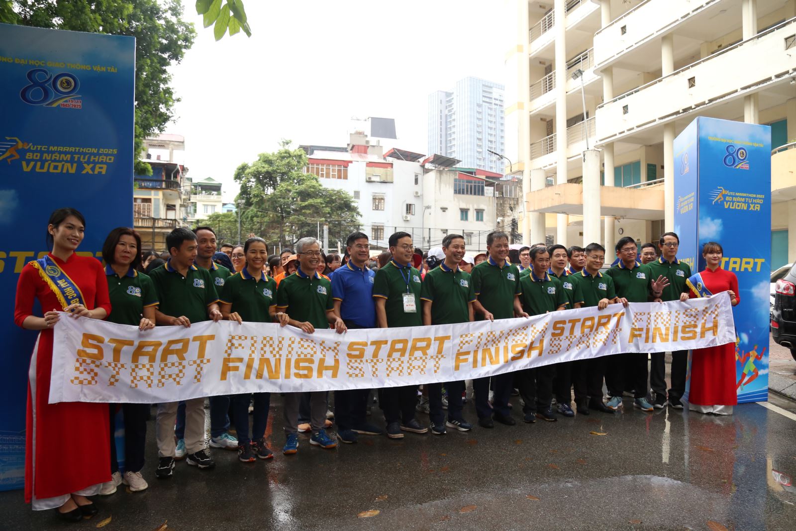 Cán bộ, giảng viên và sinh viên Trường Đại học Giao thông vận tải chuẩn bị xuất phát tại Lễ phát động giải chạy "UTC Marathon - 80 năm Tự hào vươn xa" một hoạt động ý nghĩa trong Ngày hội thể thao năm 2025