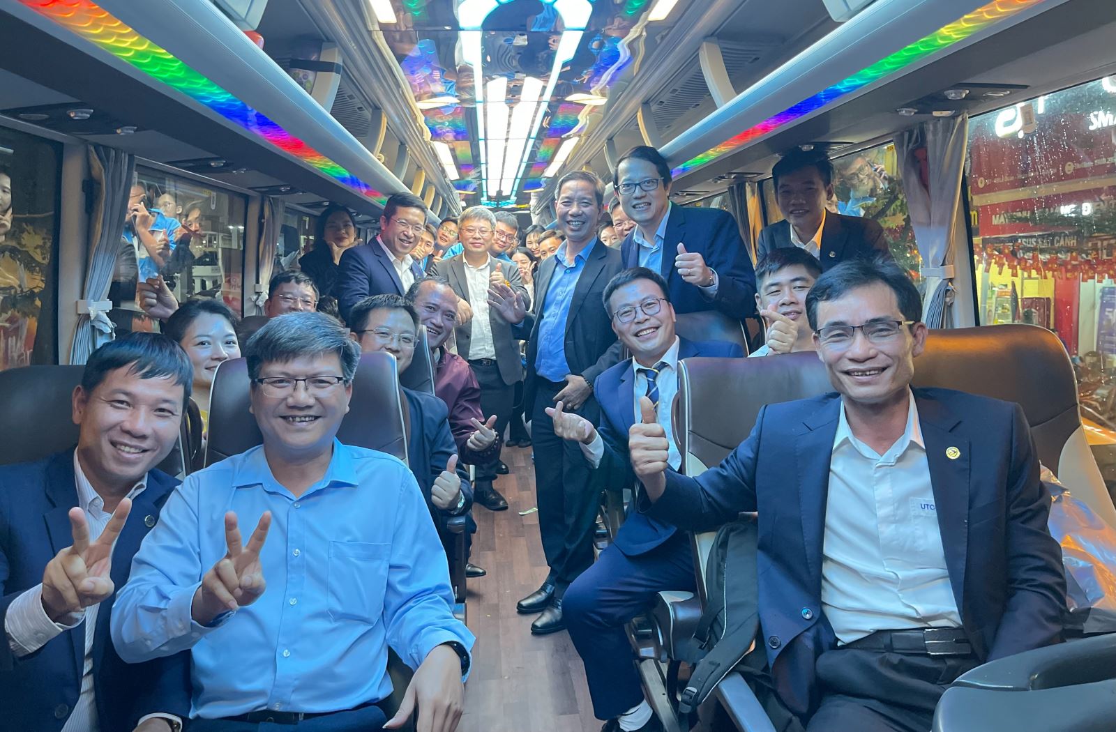Lãnh đạo 2 đơn vị chụp ảnh lưu niệm trước giờ khởi hành
