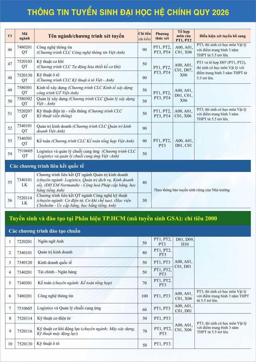 Tuyển sinh Đại học chính quy năm 2026