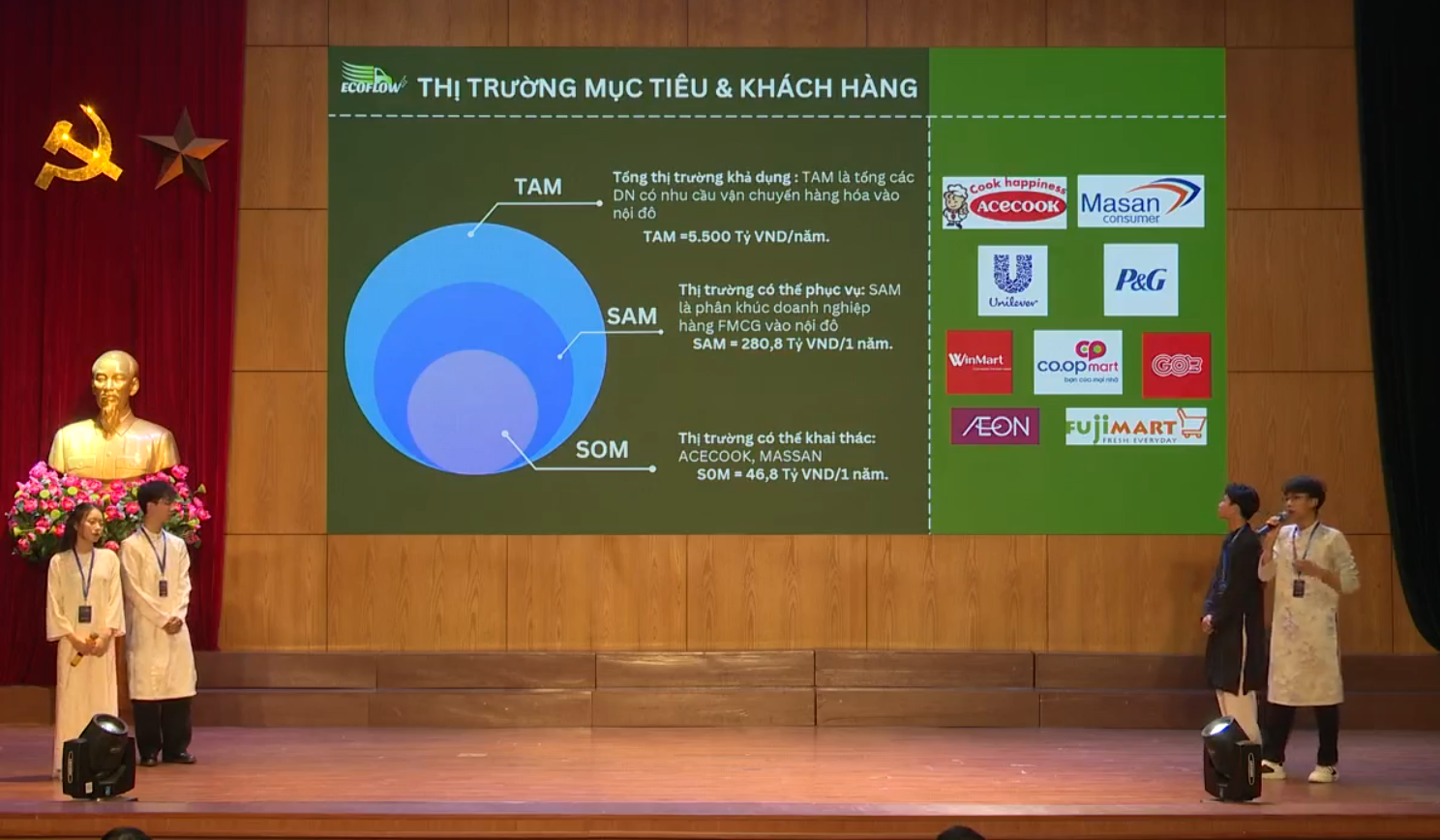 Tại vòng thi quan trọng này, 08 đội xuất sắc nhất đã lần lượt trình bày dự án trước Hội đồng Ban Giám khảo gồm các chuyên gia, doanh nhân và đại diện lãnh đạo Nhà trường. Mỗi phần thuyết trình mang một màu sắc riêng, thể hiện tư duy sáng tạo, khả năng vận dụng kiến thức chuyên ngành vào thực tiễn cũng như bản lĩnh phản biện trước những câu hỏi chuyên sâu. Nhiều ý tưởng cho thấy sự đầu tư nghiêm túc, tính khả thi và tiềm năng phát triển trong các lĩnh vực công nghệ, giao thông, kinh tế, môi trường và đổi mới sáng tạo.